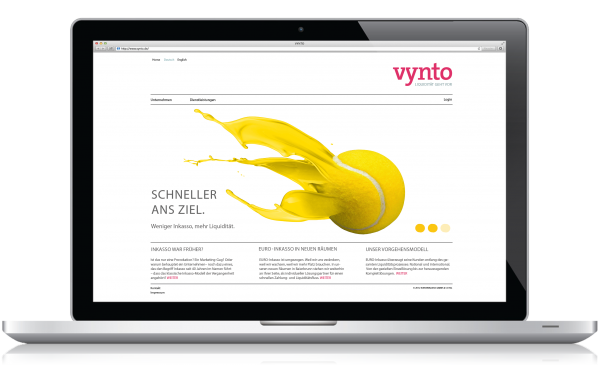 Die Neuerfindung von VYNTO war der strategischen Neuausrichtung unseres Kunden EUROINKASSO geschuldet. Das Unternehmen aus dem Raum München hatte sich in den letzten Jahren von einem reinen Inkassodienstleister zu einem internationalen Liquiditätsmanager entwickelt. Der neue Dienstleistungsansatz war vom alten Firmennamen Euroinkasso nicht mehr abgedeckt. Von Aussagekraft und Imagewert verhielt er sich dazu sogar kontraproduktiv.