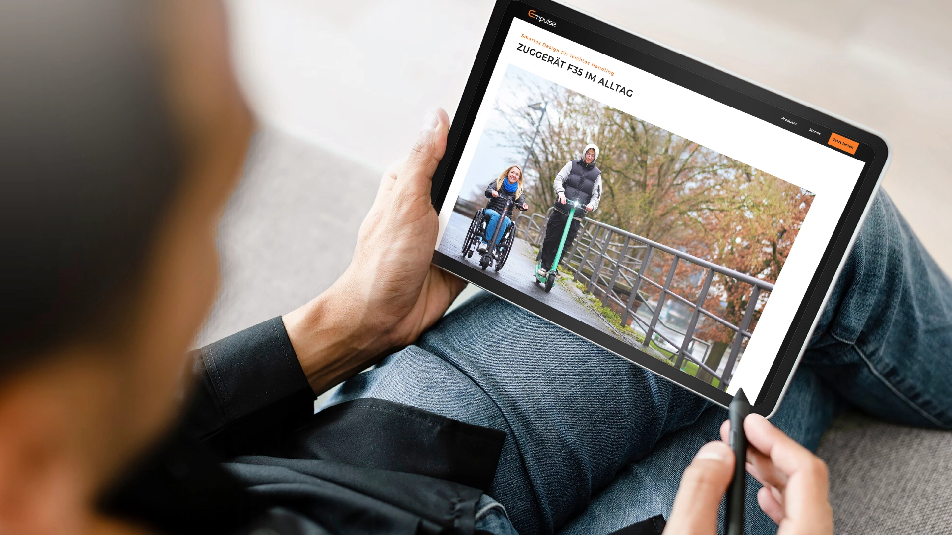 Das Leben der Menschen mit Behinderung jeden Tag aufs Neue zu verbessern – das ist der Anspruch von Sunrise Medical. Mit ihren Mobilitätsmarken ist Sunrise eine der Weltmarktführerinnen. Im Rahmen der Marke Empulse, die auf E-Antriebe für manuelle Rollstühle spezialisiert ist, entwickelten wir eine langfristig angelegte Kampagne. Sie übersetzt die Kraft des Slogans "Empower Your Life" auf unverwechselbare Weise und stärkt damit die Marke Empulse und ihre Produkte am Markt.