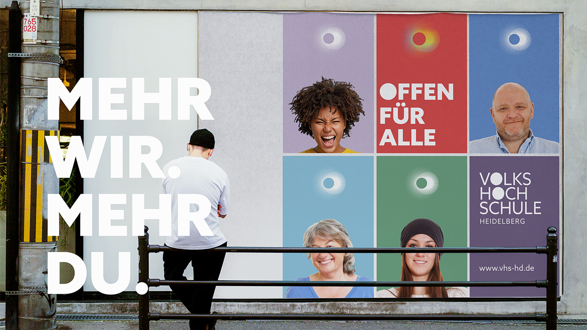 Wer kennt sie nicht – die Volkshochschule? Seit 1946 trägt sie als öffentlich geförderte Bildungseinrichtung eine besondere gesellschaftliche und soziale Verantwortung. Im ganzen Land und in unserer Stadt. Ob Einwanderung, Fachkräftemangel oder Individualisierung – auf die großen Themen unserer Zeit antwortet die Volkshochschule Heidelberg mit einem vielfältigen Angebot. zet unterstützt dabei, es sichtbar und erlebbar zu machen. Mit Humor und neuen Identifikationsmöglichkeiten.