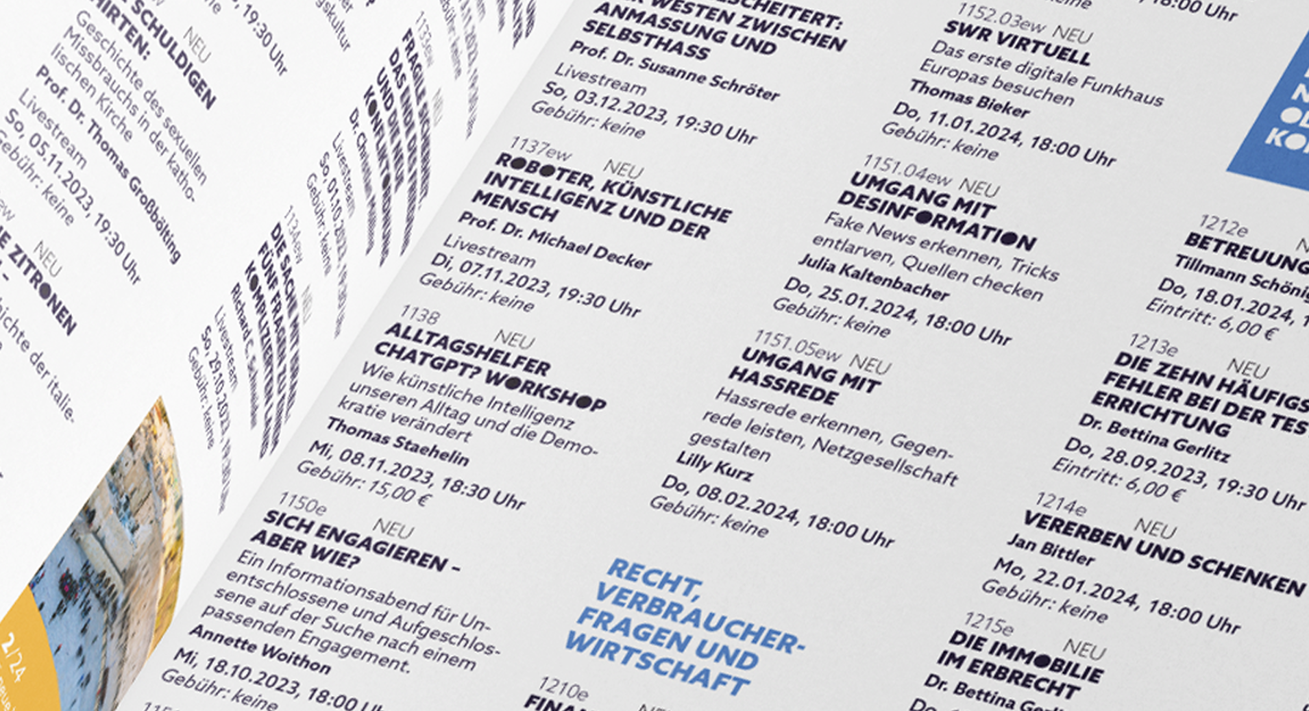 Angesichts der Vielzahl an Printmaterialien und des engen Zeitfensters von Ausgabe zu Ausgabe befähigen wir die VHS mithilfe von InDesign-Templates, ihr Magazin selbst zu gestalten – und durch die zusätzliche XML-Integration ihre Daten fehlerfrei und schnell zu verknüpfen.